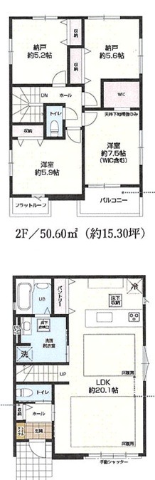 | 間取り詳細 | (1F)LDK20.17、(2F)S5.2、(2F)S5.6、(2F)洋5.9、(2F)洋7.5 |
