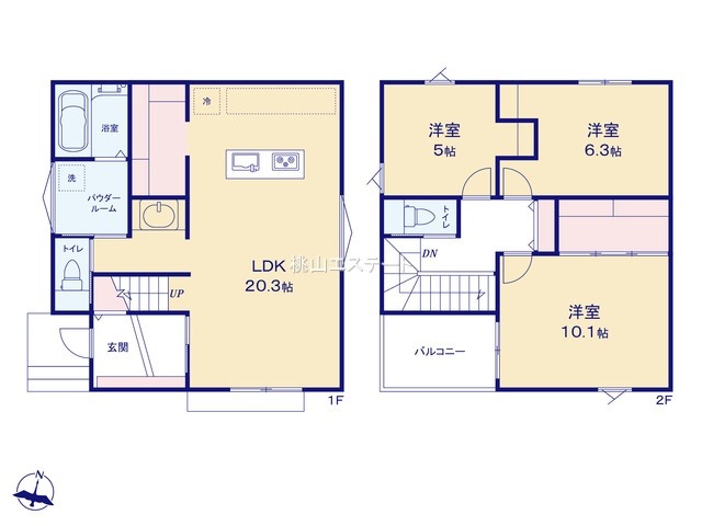 | 間取り詳細 | (1F)LDK20.3、(2F)洋5、(2F)洋6.3、(2F)洋10.1 |
