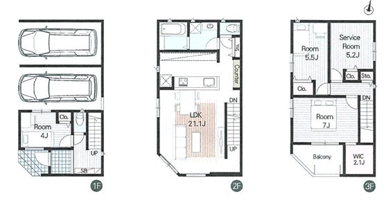 | 間取り詳細 | (2F)LDK21.1、(1F)洋4、(3F)洋7、(3F)洋5.5、(2F)洋5.2 |