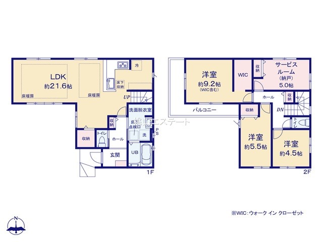| 間取り詳細 | (1F)LDK21.6、(2F)洋9.2、(2F)洋5.5、(2F)洋4.5、(2F)S5 |