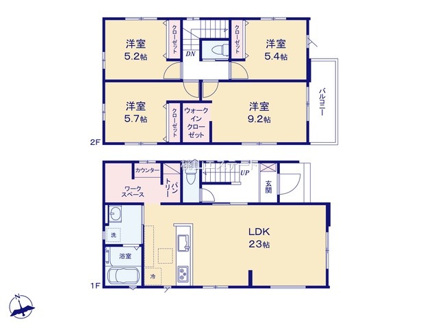 | 間取り詳細 | (1F)LDK23、(2F)洋5.2、(2F)洋6.7、(2F)洋5.4、(2F)洋9.2 |